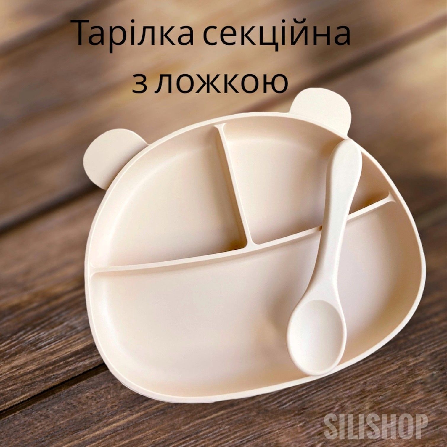 Секционная тарелка МИШКА с ложкой - Ваниль