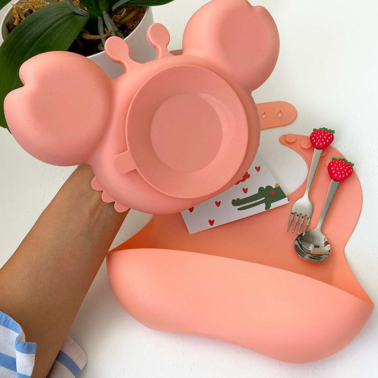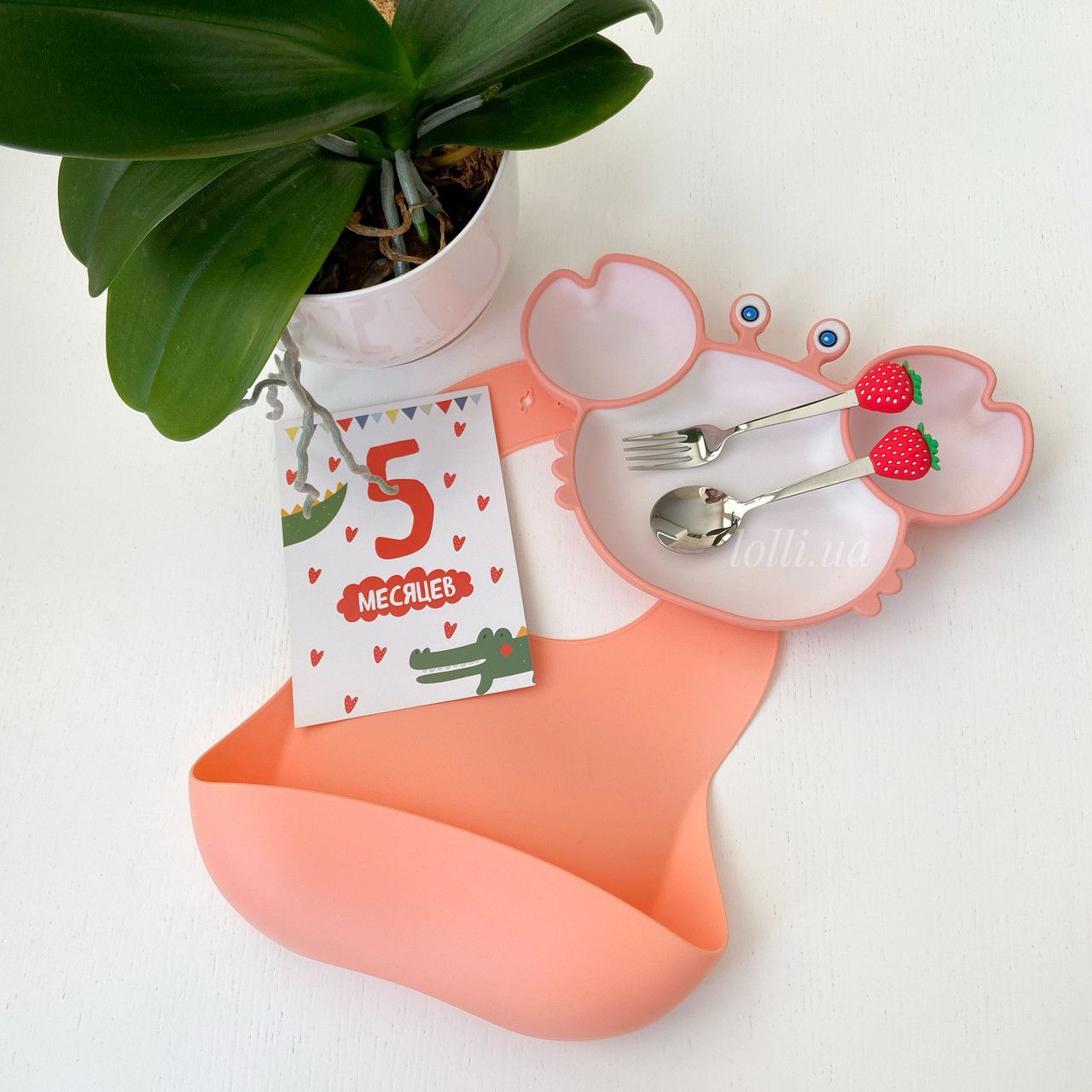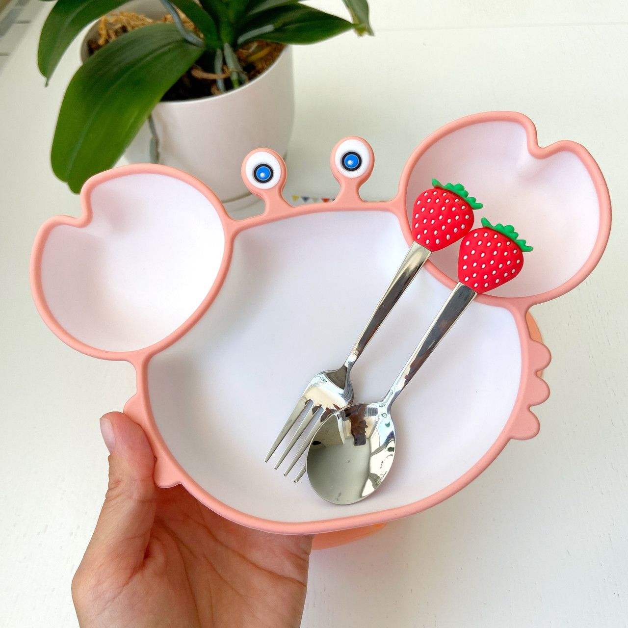 Силиконовая Тарелка на присоске КРАБ Корал (без приборов)