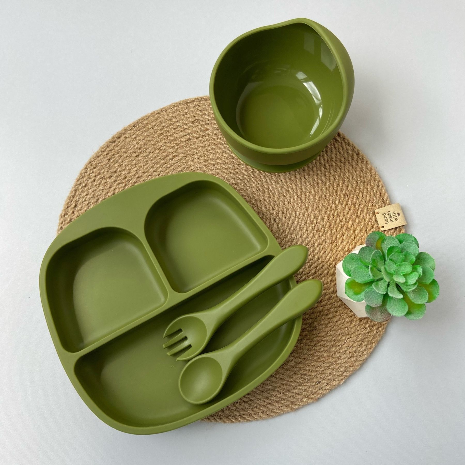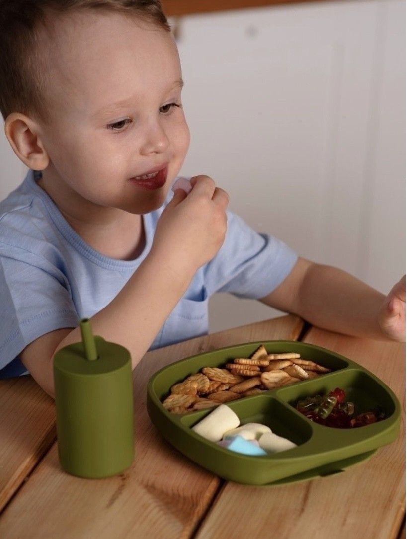 4. Весь дитячий посуд з харчового силікону можна мити в посудомийній машині, розігрівати в мікрохвильовій печі, заморожувати і навіть готувати страви в духовці. (Крім дерев'яної ложечки).