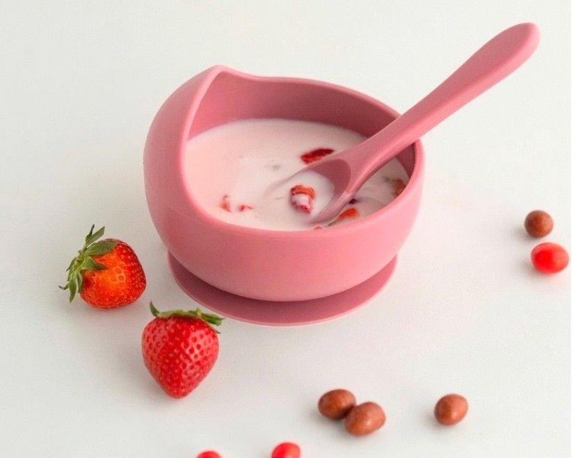 Тарелка силиконовая с ложкой Малиновая